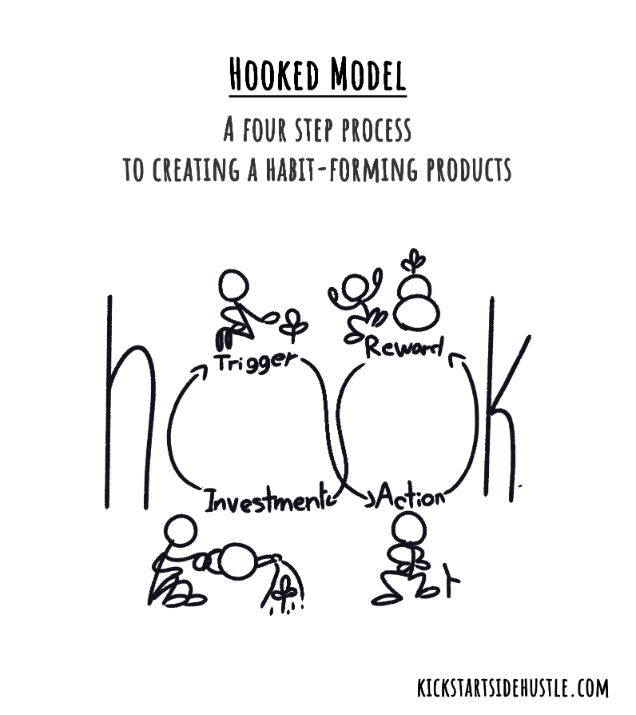 Hooked Model explains how habit-forming products keep people coming back by running them through a simple loop: trigger, action, reward, and investment. Each pass through the loop strengthens the behavior, building habits and sometimes even creating compulsive use.