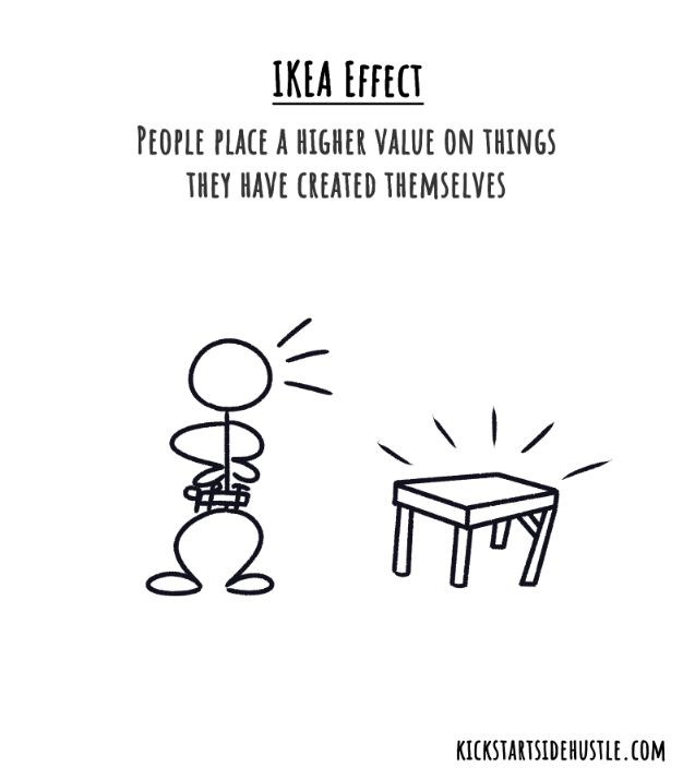 One research found that even if participants had built a simple IKEA storage box by themselves, they were willing to pay 63% more for it, compared to a group of people who only saw the fully built.