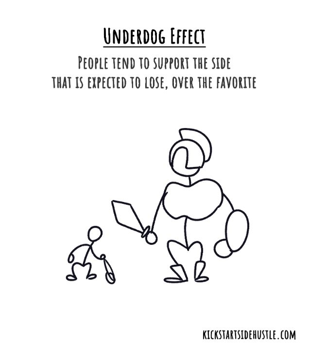 Underdog Effect means we root for people or brands that seem disadvantaged but still fight hard. It’s about telling a story of a small start, low budget, a big competitor to fight, and steady effort against tough odds. Effort against the odds makes us feel emotionally connected.