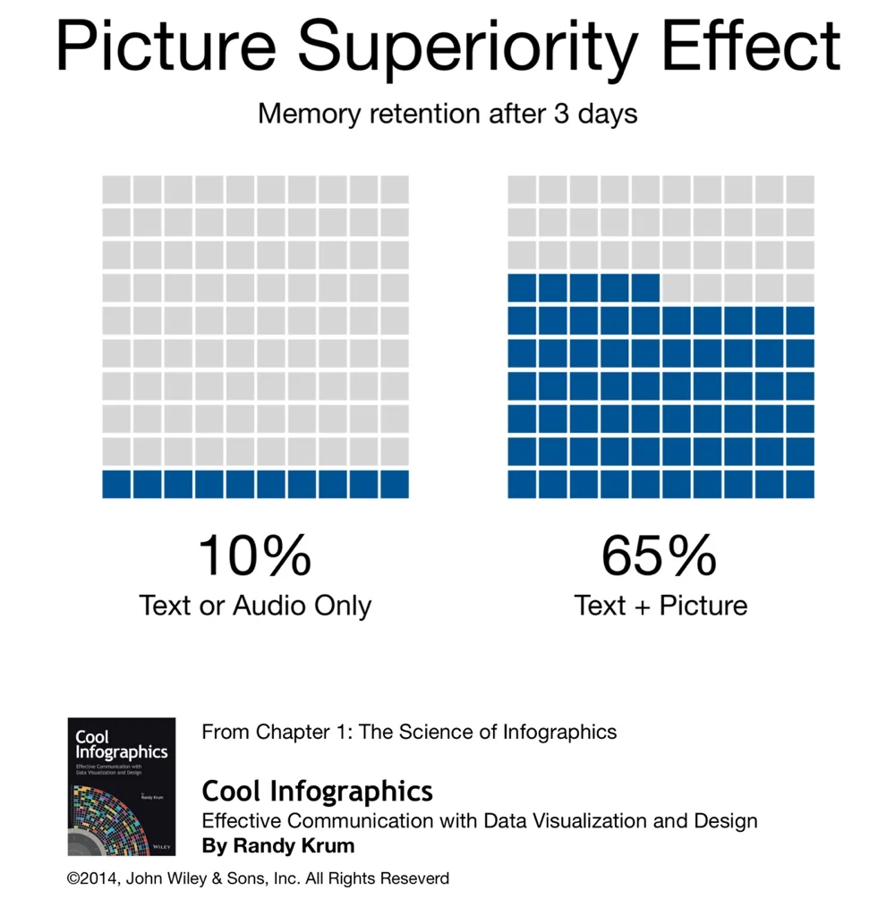 But when the same info is shown with a relevant image, people remember around 65% of it 3 days later.