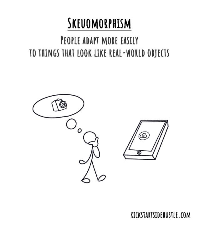 Think of early smartphone apps that looked like real notebooks, calendars, or calculators. The fake leather, buttons, and shadows helped people feel at home in a new digital world.