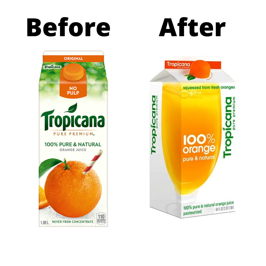 Tropicana Orange Juice experienced a major rebranding disaster in 2009 because they didn’t follow Weber’s Law. Instead of gradually changing their logo over time (like Google did), Tropicana altered nearly every aspect of their classic design overnight. They invested $35M and lost $20M due to their logo being unrecognizable.