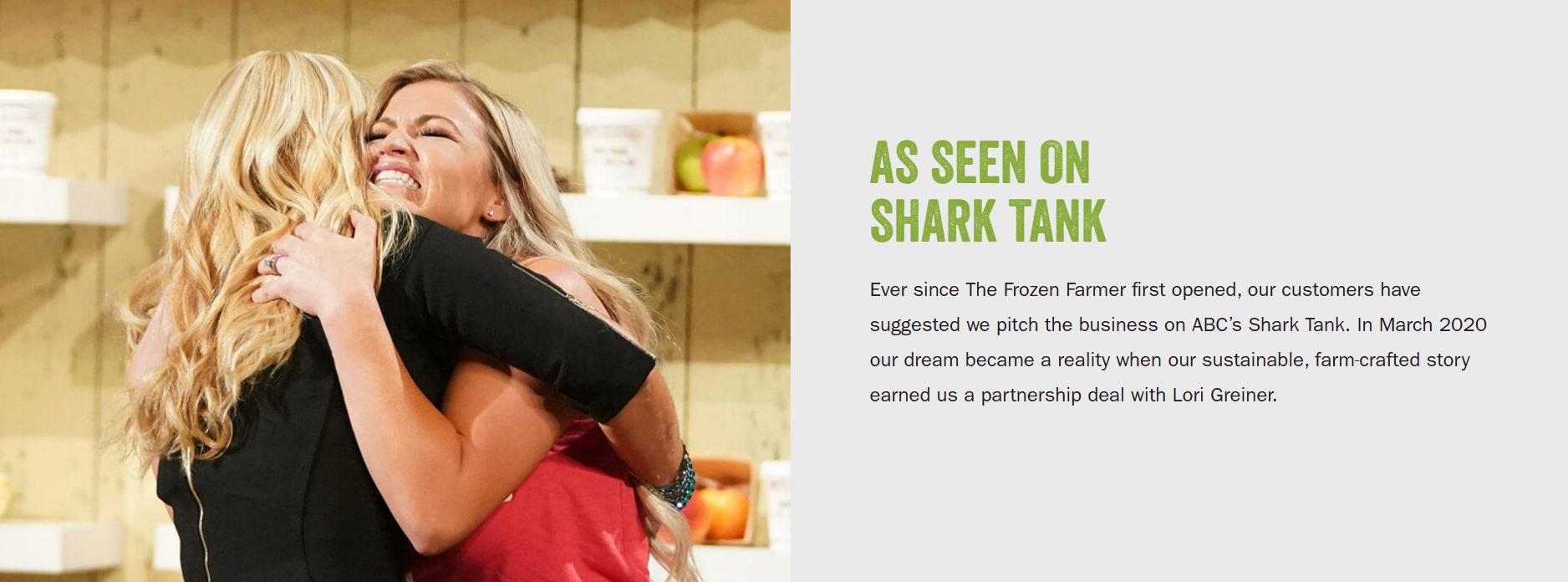 Frozen Farmer puts “As Seen on Shark Tank” everywhere. The Shark Tank authority makes people instantly trust the brand, even if they’ve never heard of it before.