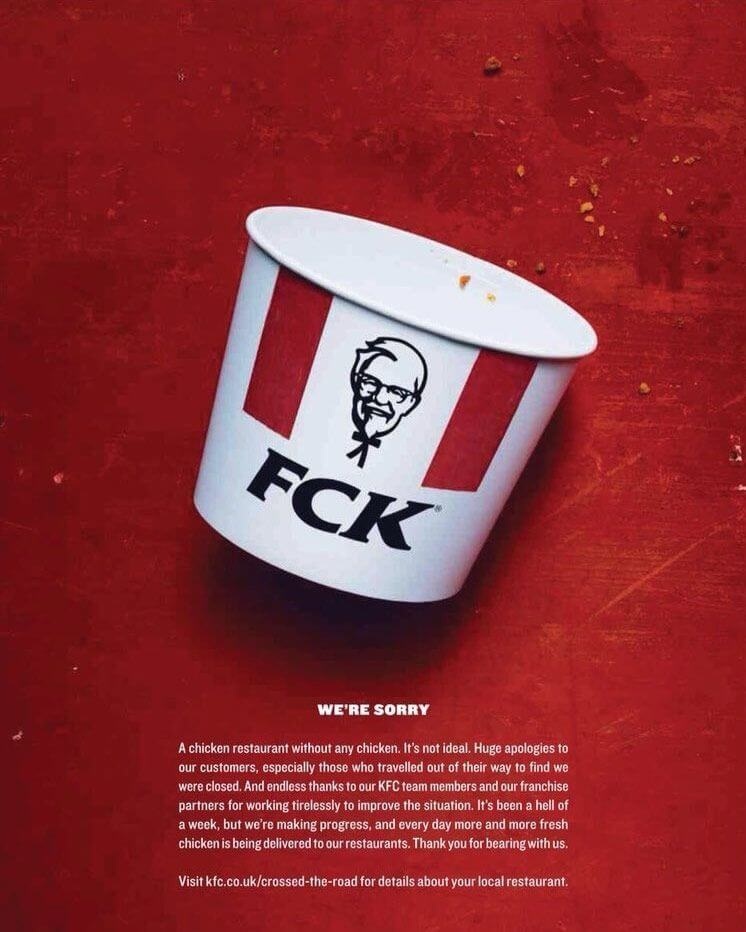 1. KFC - “FCK” apology campaign