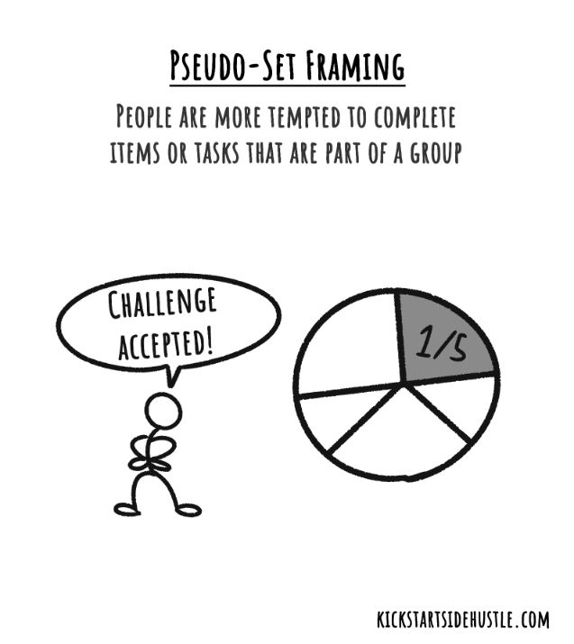 Pseudo-Set Framing means we get motivated when tasks feel like part of an incomplete set, even if the set is totally made up. Our brain hates leaving things unfinished.