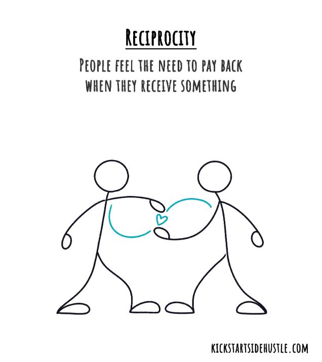 Reciprocity means we feel the need to give something back when someone gives us something first. Even a small favor creates a quiet pressure to return it.