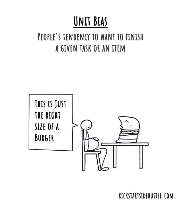 Unit Bias means we feel the urge to finish a full unit of something, no matter its size. If it’s presented as one piece, one portion, or one task, our brain treats it as the natural amount to complete.